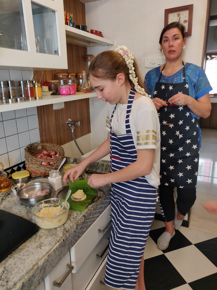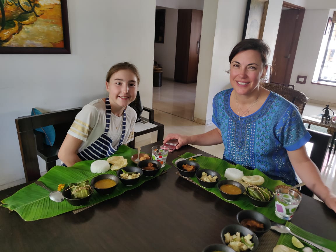 Traveling Spoon linked Chef Abhinanda with international holidayers who walked around with her shopping for fresh produce and authentic ingredients. They cooked together back in her kitchen and enjoyed a traditional meal together. Sharing of food stories and teaching recipes to these American tourists was greatly received.