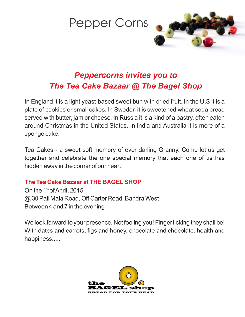 Peppercorns curated and hosted an event celebrating the grandma’s favourite-home baked tea cakes. Ensconced in a lane by the Pali hill, the quaint and much loved cafe, The Bagel Shop was the venue. On the 1st of April, 2015, there was a eclectic array of tea cakes beautifully packed and equally beautifully baked. There were banana walnuts, there were rum cranberry, there were fresh and light lemon pound, classic coconut, traditional chocolate and a few more types of cakes. The afternoon was generously attended and amidst laughter, tea and cakes there was nostalgic memories created while some nostalgic memories were shared. A cake quiz added to the fun and frolic of the event. Some wrote after;